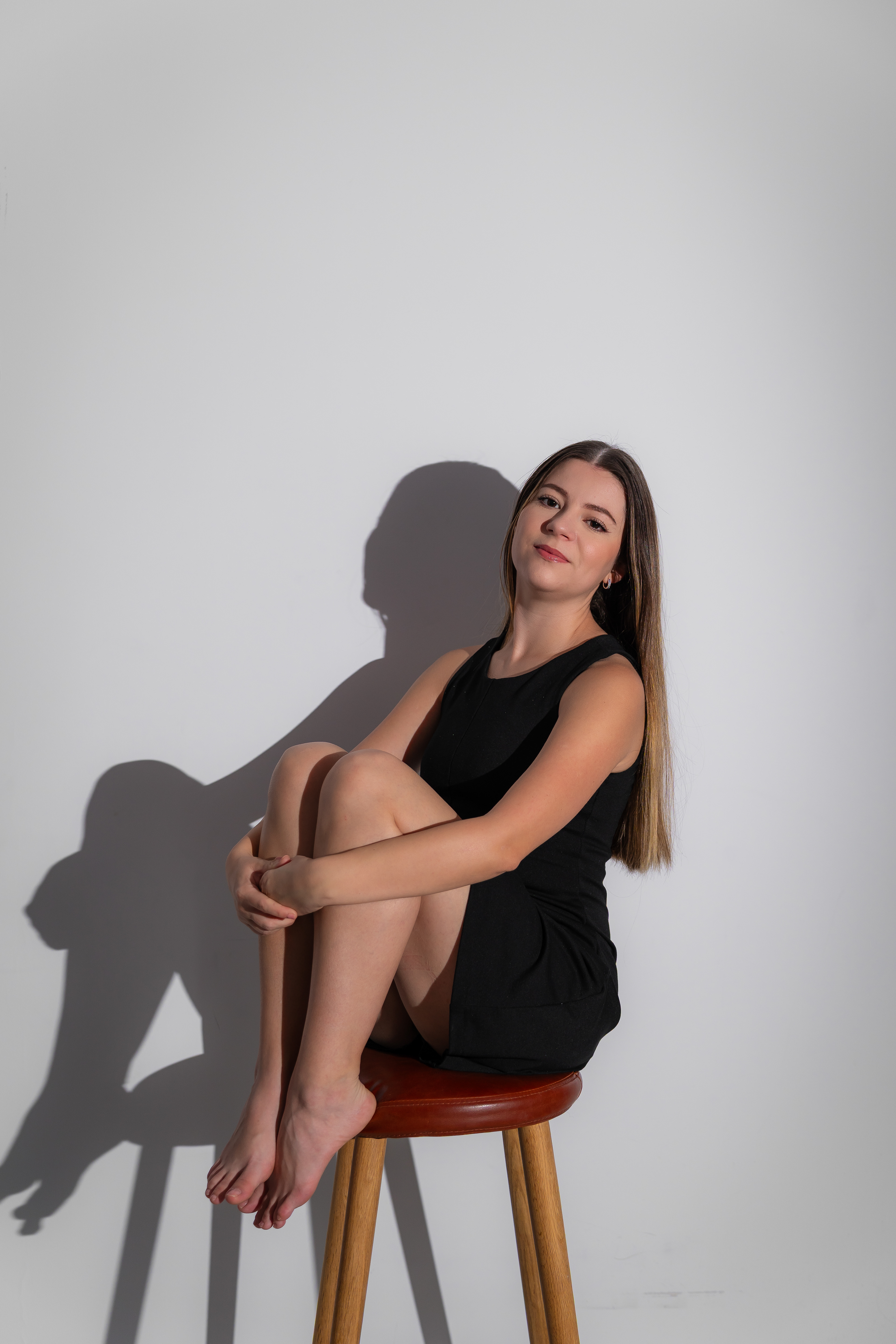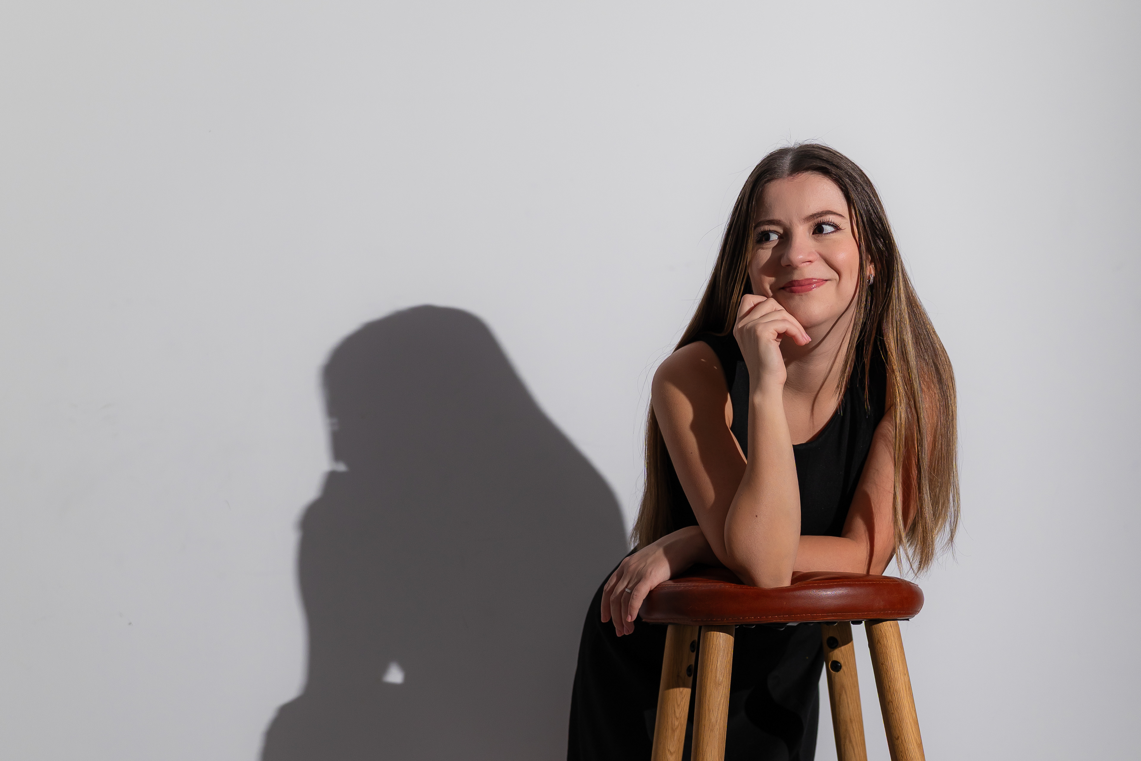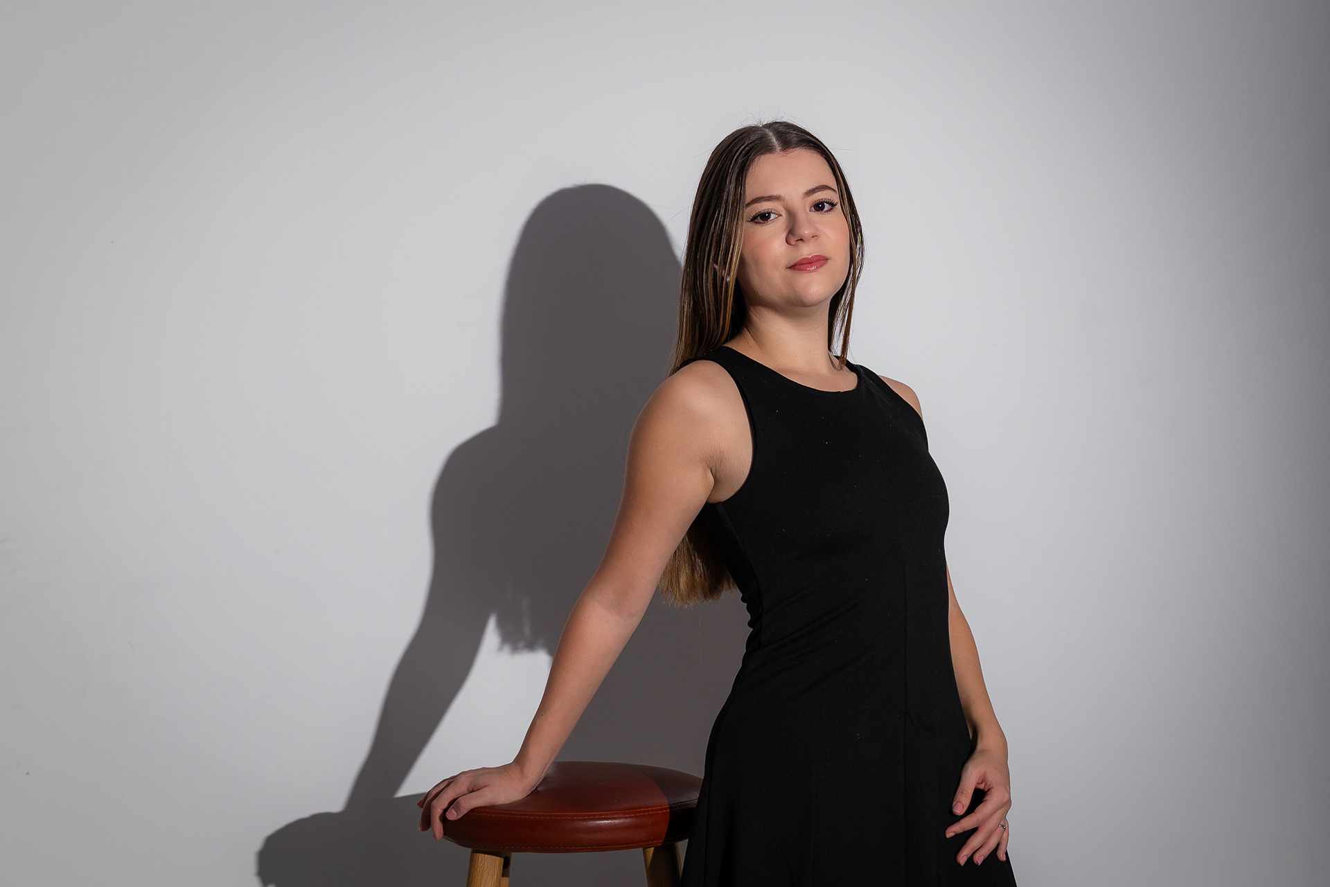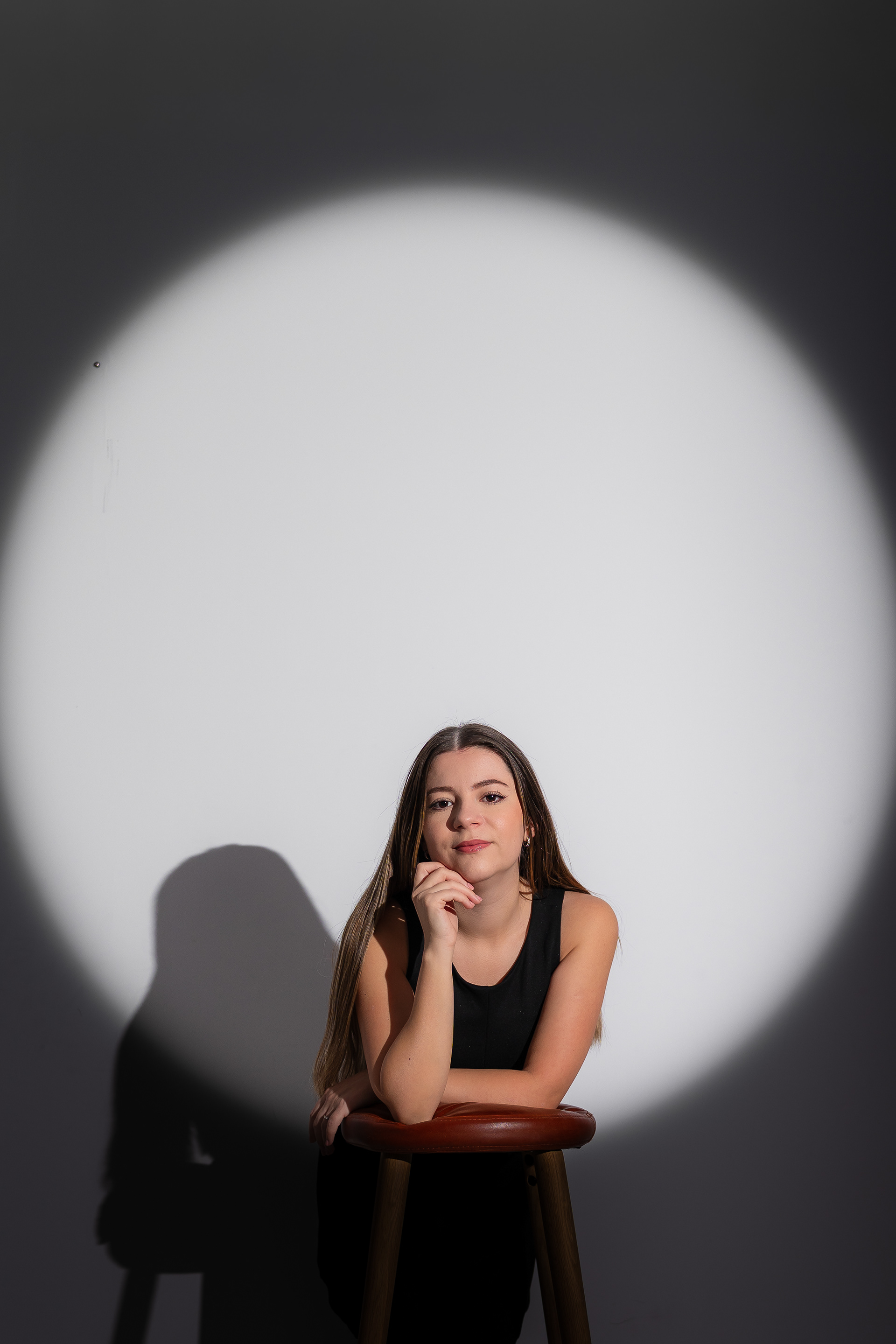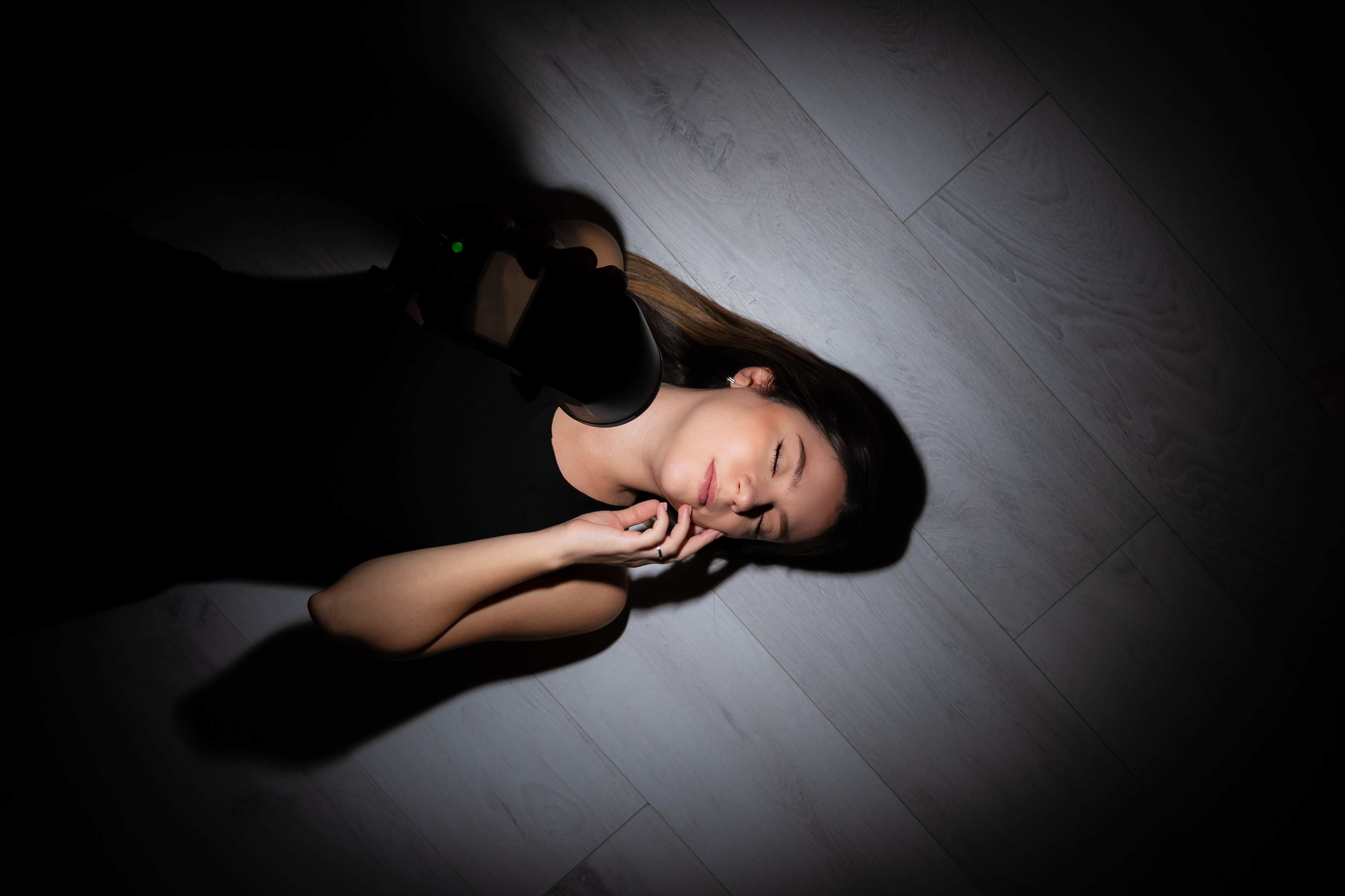 Am urmarit fotografia de portret minimalista, realizata în studio, punand accent pe jocul de umbre si pe expresivitatea naturala a modelului, folosind o schema de iluminare dramatica